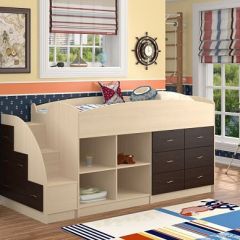Кровать-чердак "Дюймовочка-4/2" рассчитана на двоих детей, так как объединяет два полноценных спальных места. Выдвижная нижняя кровать может устанавливаться в удобном положении для сна в ночное время и убираться в дневное время. В лестнице предусмотрены выдвижные ящики для хранения вещей. Такой уголок экономит пространство в детской комнате. Кровать подойдет детям от 1 года до 18 лет.