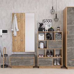 Прихожая Иннэс-3 Универсальная (ЛДСП бетон светлый/белый глянец)